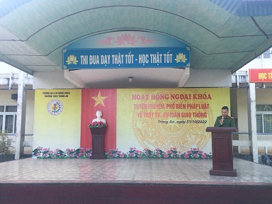 Sáng nay, thứ hai ngày 17 tháng 10 năm 2022 trong tiết chào cờ đầu tuần Trường THCS Tràng An đã tổ chức buổi hoạt động Ngoại khóa với chủ đề " Phòng chống, bạo lực học đường".